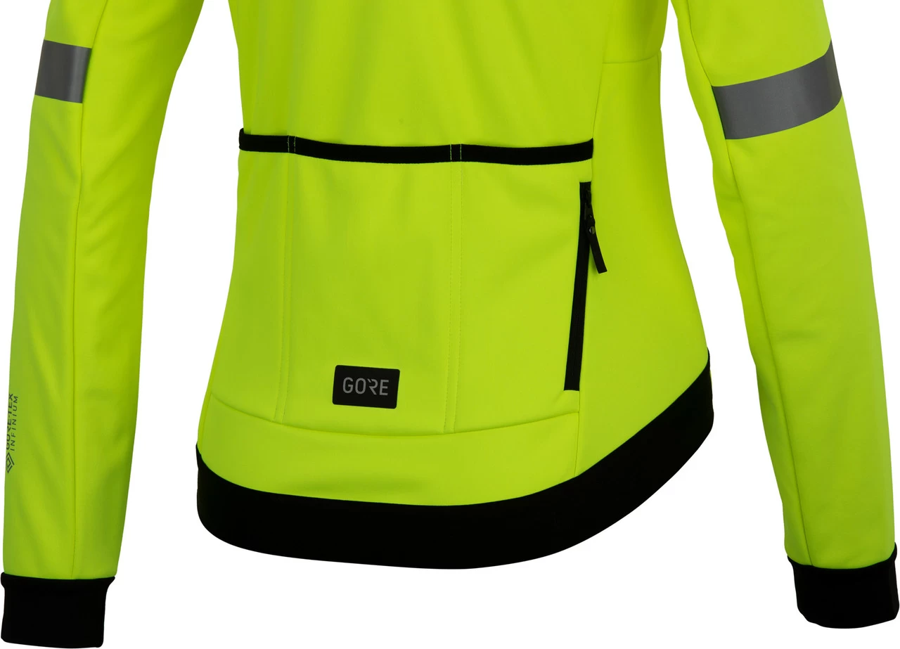 Spécifications :Utilisation :routeCoupe :Slim FitMatériau :coupe-vent (GORE® WINDSTOPPER®), respirant (GORE-TEX INFINIUM™), déperlant (DWR)Température recommandée:temps fraisSexe:damesCaractéristiques :coupe-vent, respirant et durablement déperlant grâce à GORE-TEX INFINIUM et GORE WINDSTOPPERrevêtement DWR déperlant (sans PFC nuisibles à l’environnement)doublure chaude en polairele col montant protège du ventdos allongé adapté à la position de conduiteourlet au dos avec élastique pour un ajustement optimisé3 poches sur le dos et une poche avec fermeture éclairfermeture éclair sur toute la longueur à l’avantComposition du matériau :Tissu extérieur : 100 % polyesterOurlet : 84 % polyester, 16 % élasthanneTechnologies :DWR